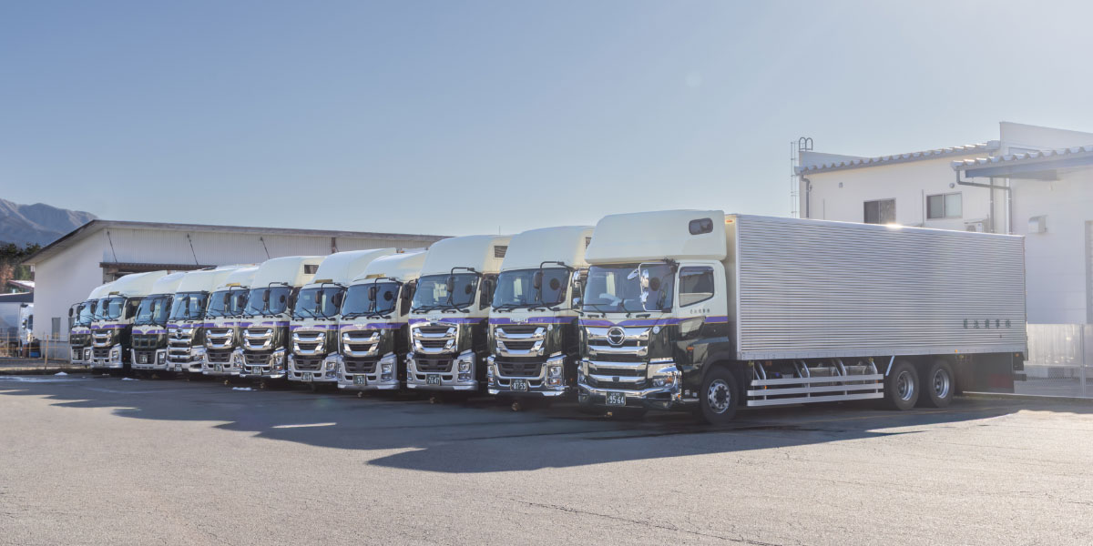 自動車関連部品、一般貨物、食料品など、多岐にわたる貨物を東北から関東、中部、中国地方へ安全・確実にお届けします。また、ダンプ車による建設資材や土木工事用骨材の運搬や、リサイクルプラントを設置し産業廃棄物の収集運搬処分も行なっています。お客様一人ひとりのニーズに応え、「安全・安心」を追求した質の高いサービスをご提供いたします。