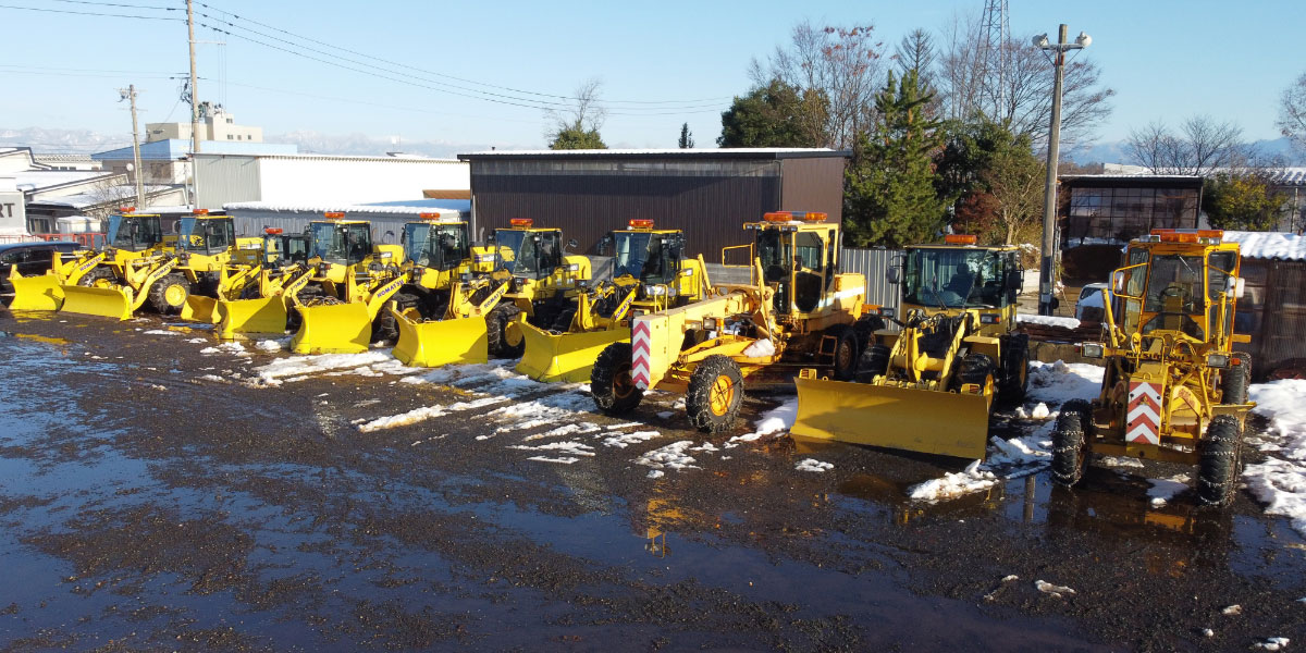 雪国山形の冬季における重要なライフラインとして、寒河江市内の道路除雪作業を行っております。豊富な経験と専用機械により、安全で迅速な除雪作業を実施。通勤・通学路の確保から商業施設、工場などの駐車場まで、地域の皆様の冬の暮らしを支えます。